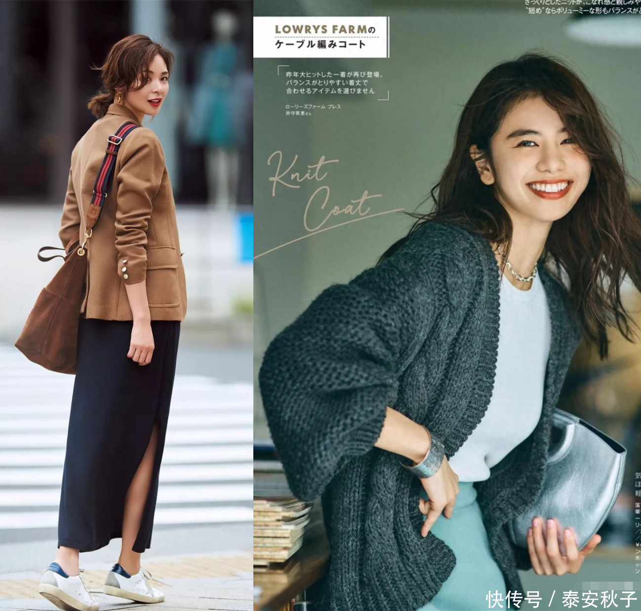 尤其是这种既能抵保暖凉,又能凹造型的短款开衫,内搭舒心针织衫,再搭配平底鞋,添了几分大要帅气。