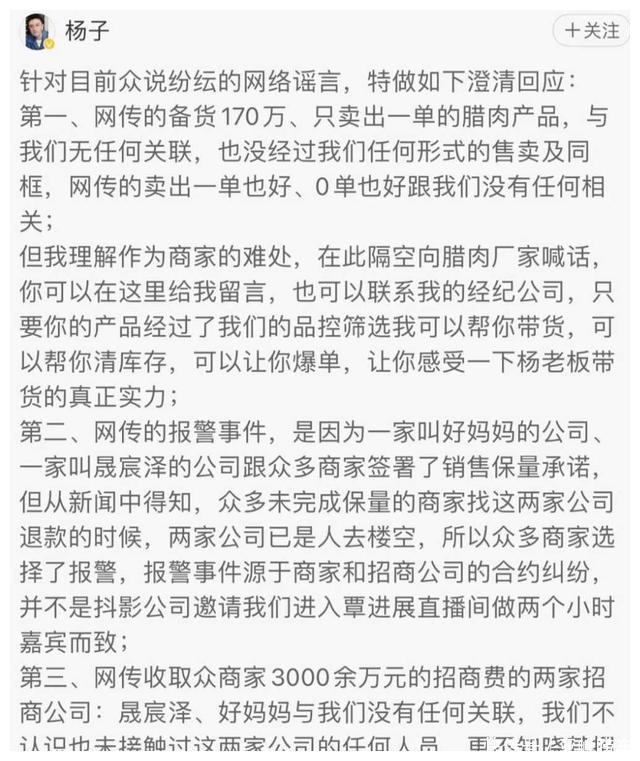 杨子与黄圣依在直播界训戒丰富,领有我方的直播间,但这次的带货却令东谈主大跌眼镜。据悉,不啻一个商家遇到了一样的情况,共计有60位商家受影响。面对商家的不悦,杨子回复称这次事件源自商家与招商公司的合约纠纷,并非他们的职守。