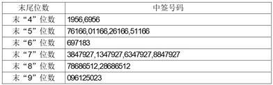 凡参与本次网上订价刊行申购锡南科技A股股票的投资者握有的申购配号余数与上述号码一样的,则为中签号码。中签号码共有24,250个,每个中签号码只可认购500股锡南科技A股股票。